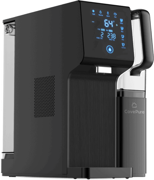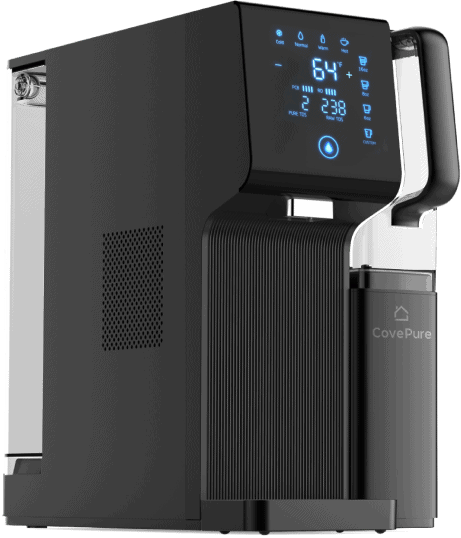 CovePure sits on your countertop and works seamlessly. Just fill the tank with water, and the machine takes care of the rest.